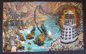 “Death To The Daleks” is an original painting by Alan Arthurs. Death To The Daleks was part of the Doctor Who series filmed in 1974 when Jon Pertwee played the Doctor.